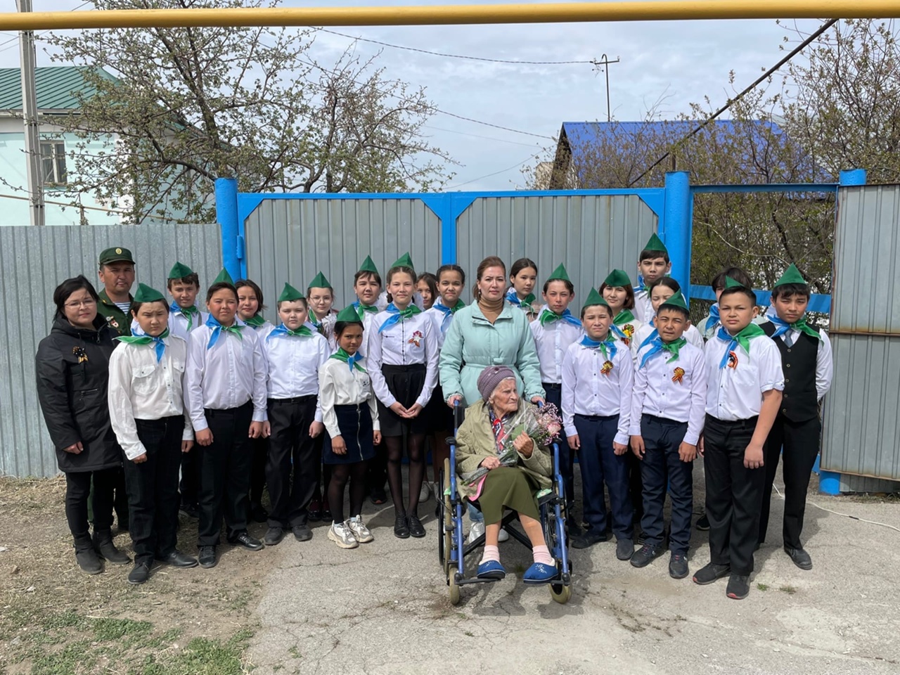 Ученики 6б класса, в будущем «шаймуратовцы» (кл.руководитель Куланбаев А.С.) поздравили у дома участника Великой Отечественной войны Неретину Ольгу Никитичну!