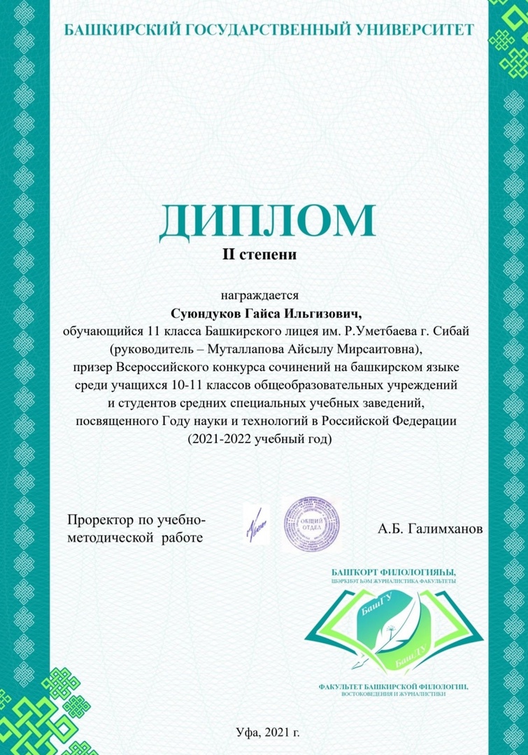 Фән һәм технологиялар йылына арналған башҡорт телендә Бөтә Рәсәй иншалар конкурсы