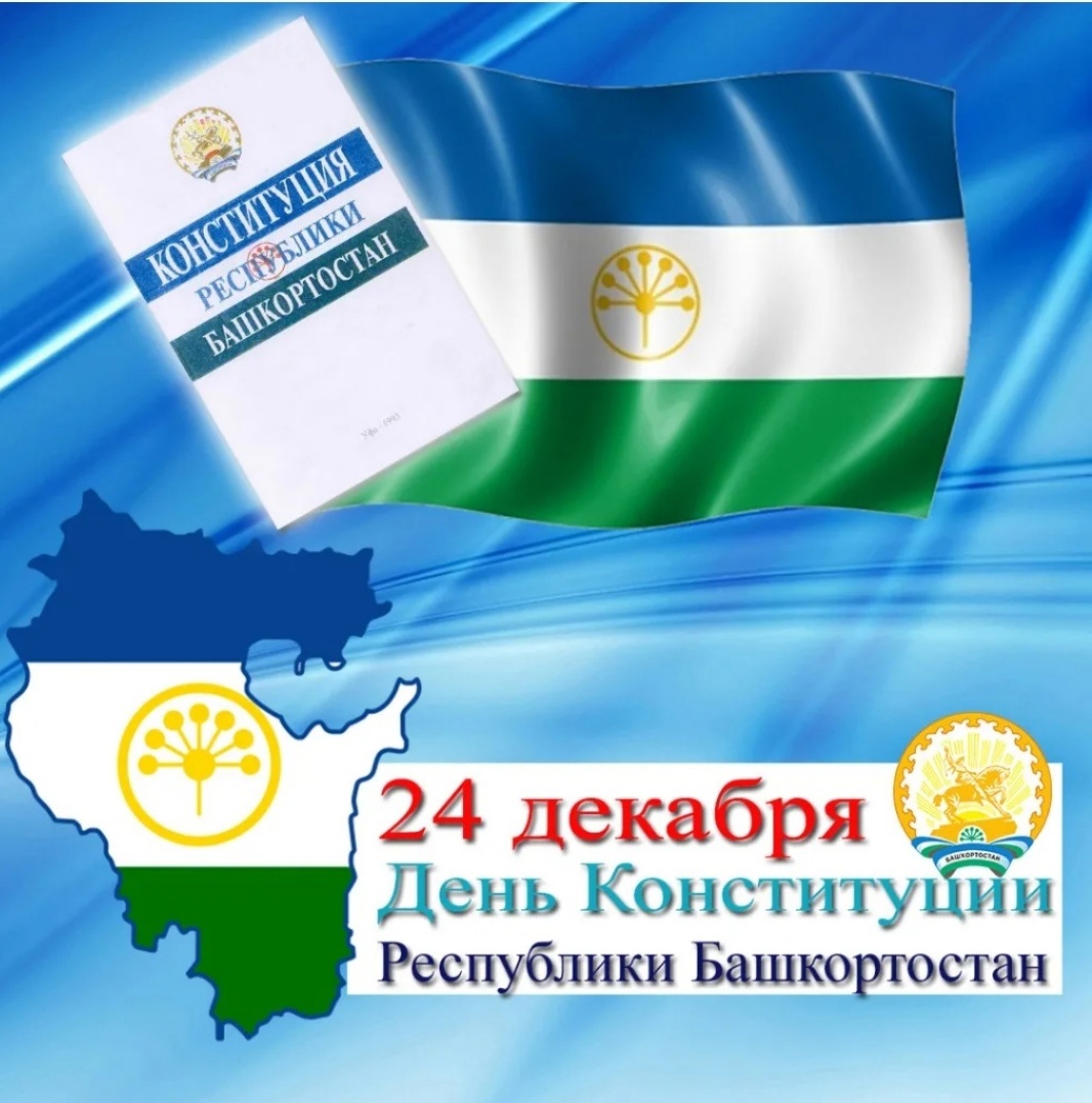 24 декабря отмечается День Конституции Республики Башкортостан. Именно в этот день в 1993 году Верховным Советом Республики Башкортостан был принят Основной Закон Башкортостана. Впервые Основной Закон был полностью разработан самой республикой. Предыдущие Конституции дословно воспроизводили сокращенные варианты союзной и российской Конституций.